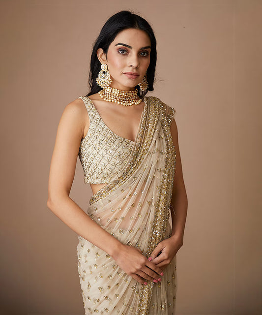 Cream Woven Pure Chinnon Silk Kurta with Sharara and Dupatta