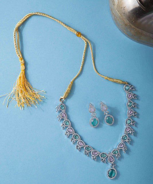 Diamond Necklace and Matching Pastel Diamond Earrings Set
