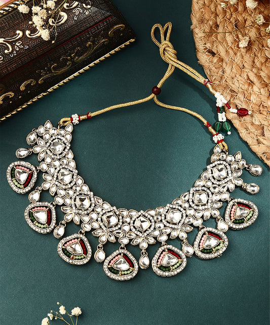 Five Layer Necklace Set with Round Pendants and Multicolour Stones