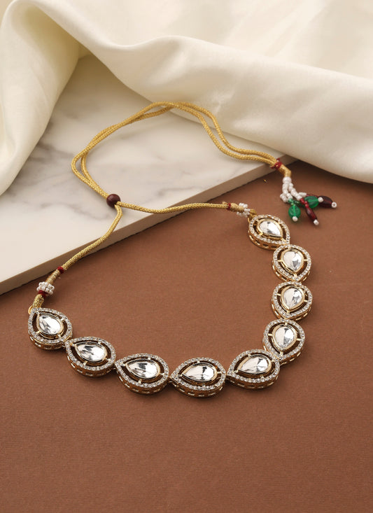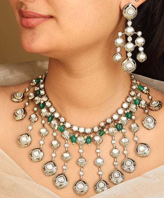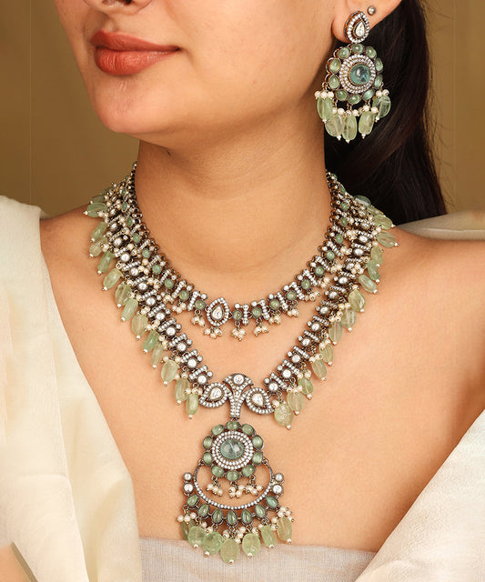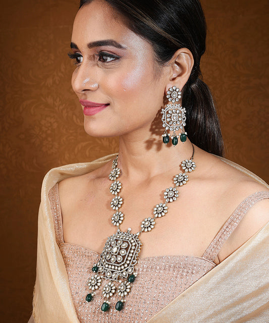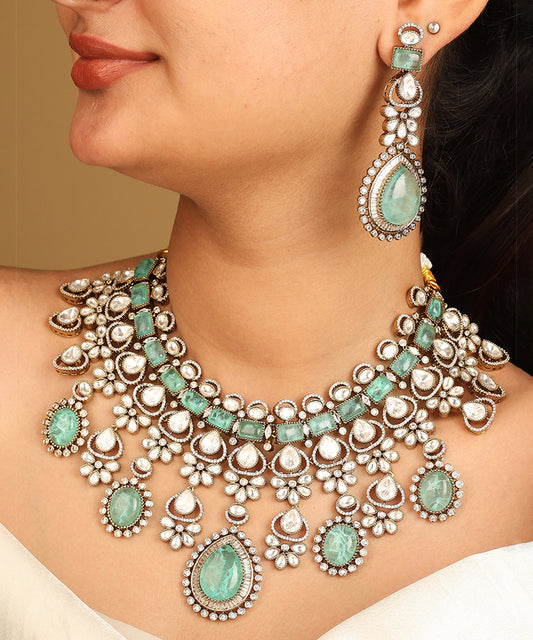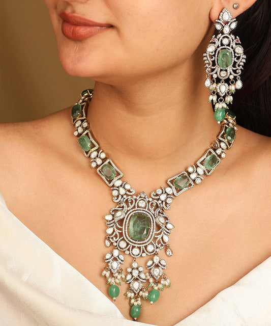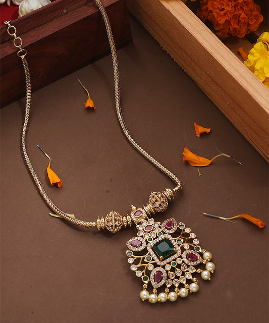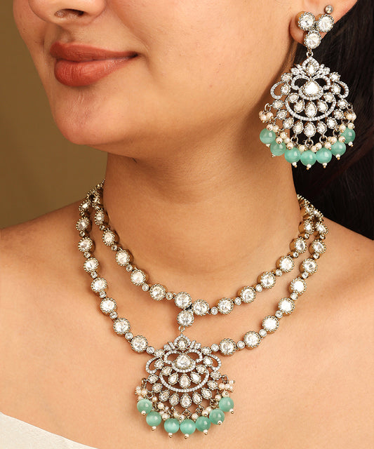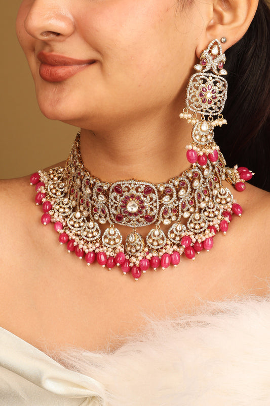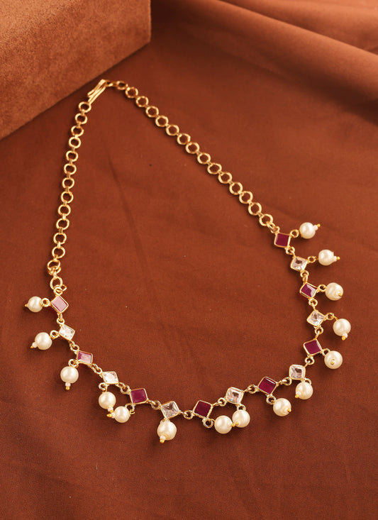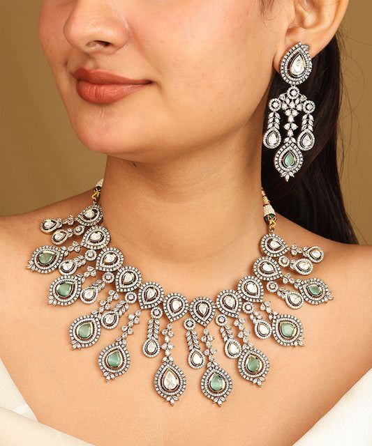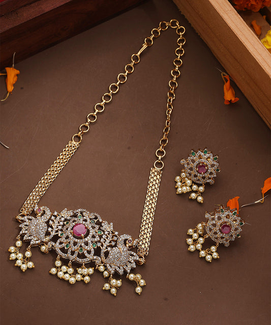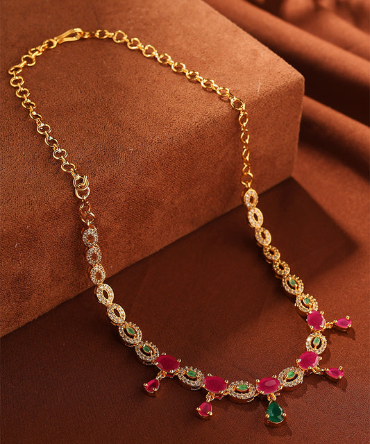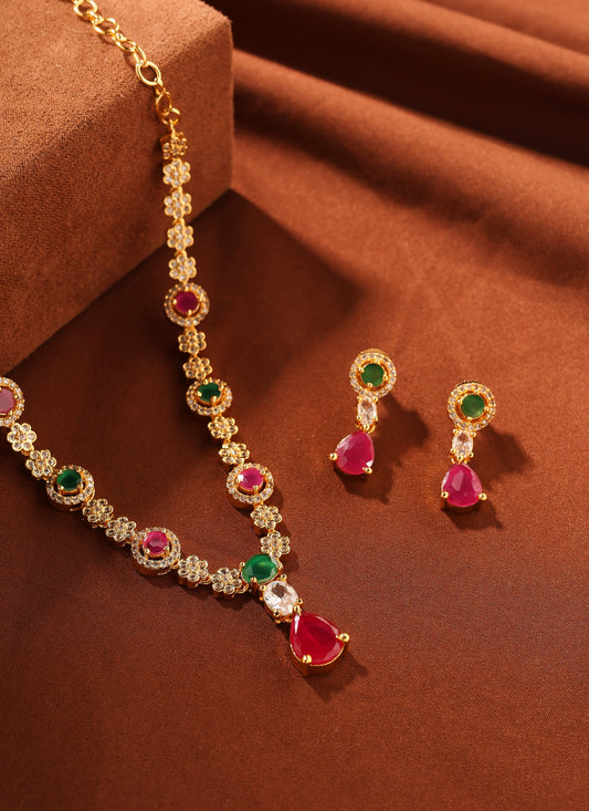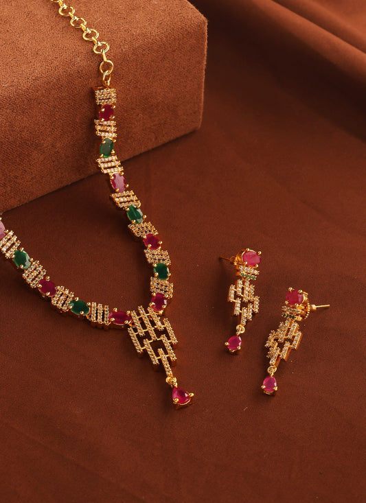 American Diamond Necklace Set with Red and Green Diamond Stones