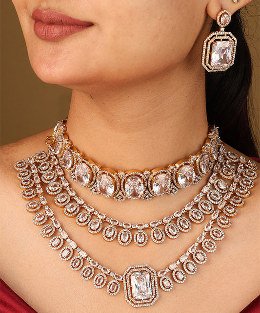 American Diamonds Bridal Necklace Set Choker and Long Necklace Statement Set
