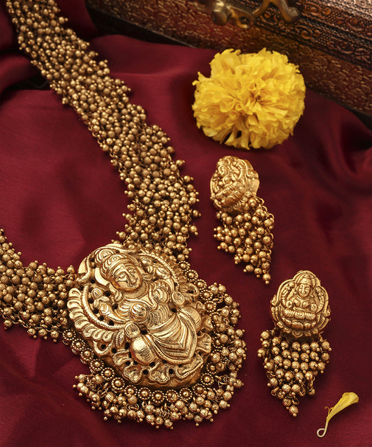 Antique Gold Lakshmi Necklace with Beaded Layers