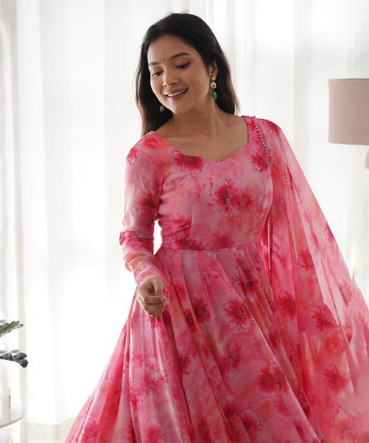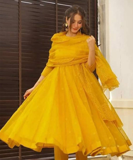 Anarkali Lavender Art Silk with Bottom and Dupatta