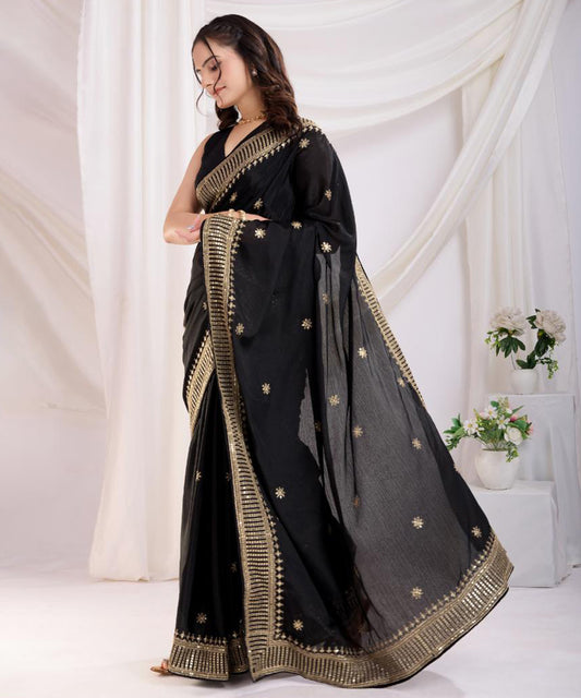 Black Soft Georgette Saree with Classic Drape and Unstitched Blouse