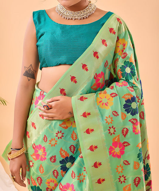Blooming Green Floral Weave Art Silk Saree with Elegant Patterns