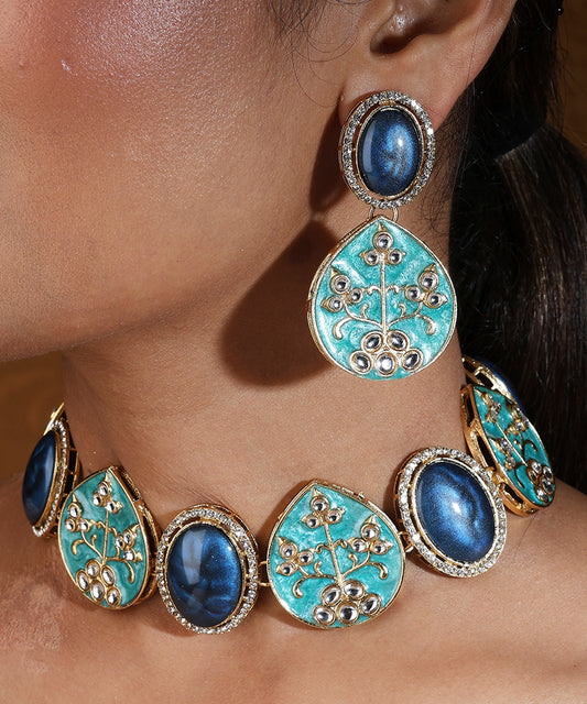 Blue Cotton Embroidered Kurta with Pant & Dupatta