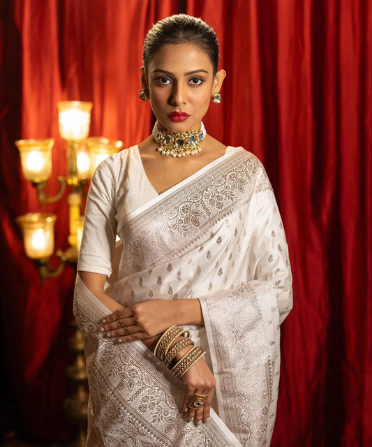 White Queen Soft Lichi Art-Silk Saree
