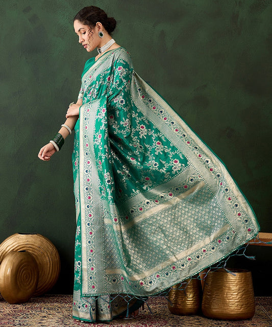 Women's Green Art Silk Saree with Contemporary Weave