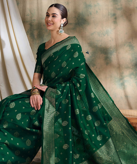 Women's Green Soft Art Silk Woven Saree with Blouse