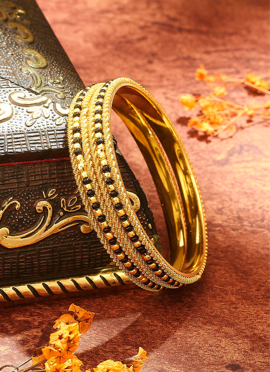 Gold-Plated Black Beaded Wedding Bangles