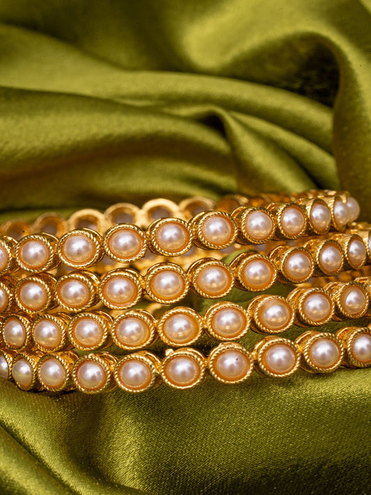 Set of 4 Gold-Plated Pearl Bangles