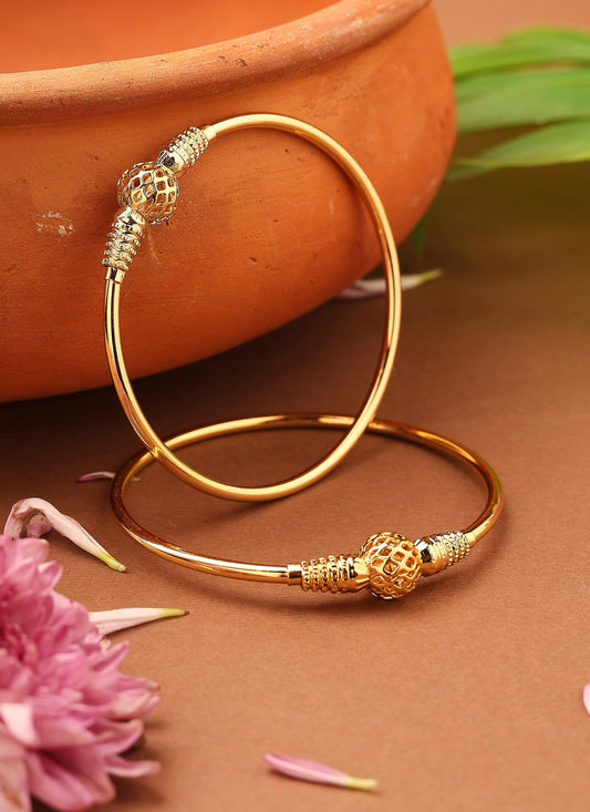 Gold-Plated Plain Bangles with Intricately Designed Center Ball