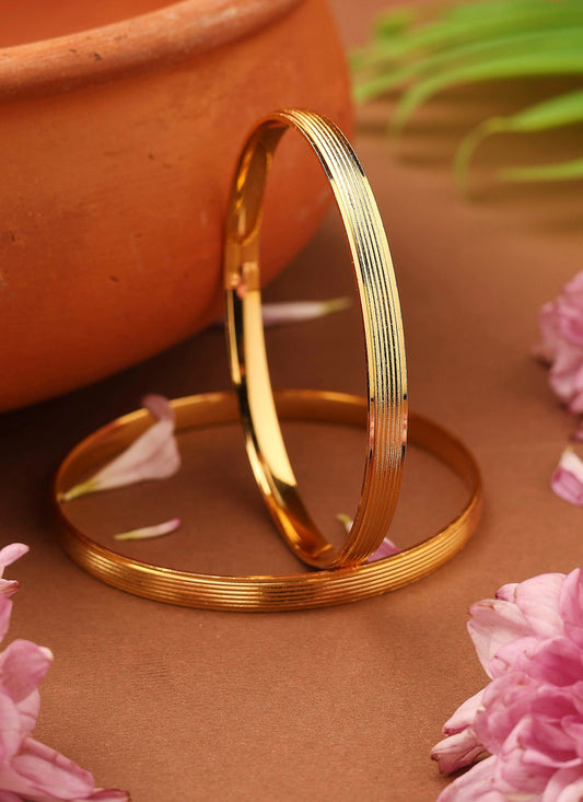Plain Gold-Plated Bangles with Self-Line Design
