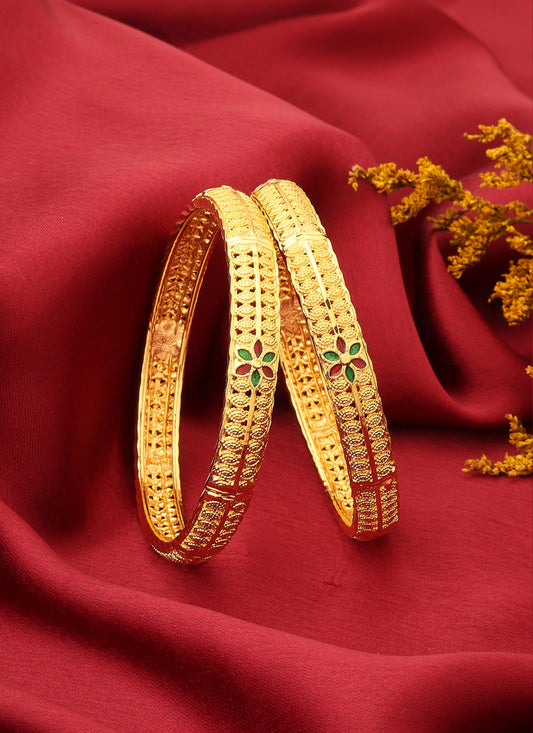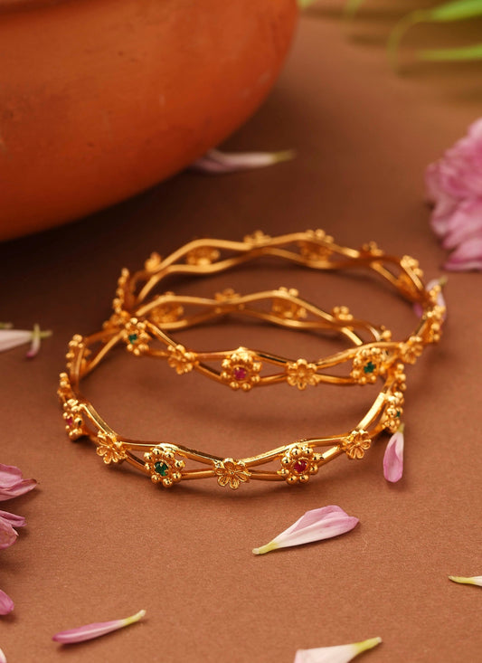 Gold-Plated Bangles with Floral Design