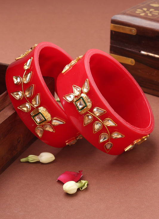 Rajwadi Red Bangles with Kundan Work