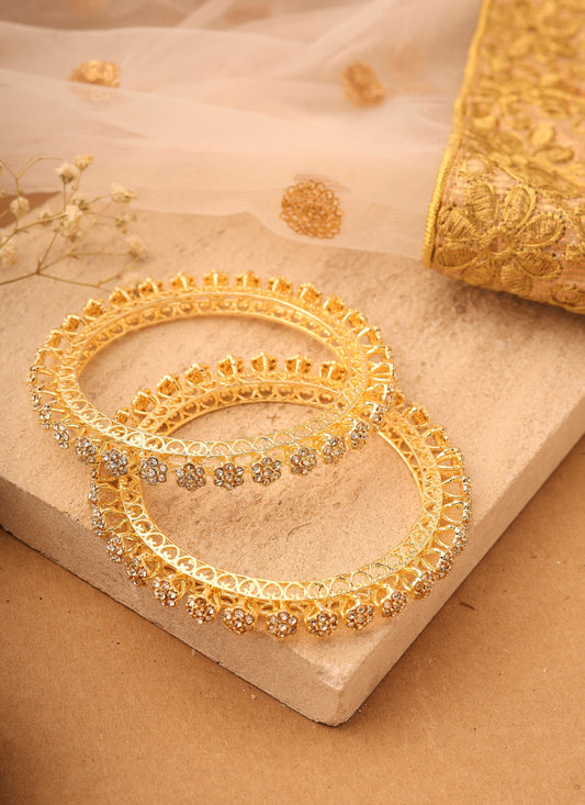 Gold-Plated Flower-Designed Stone-Studded Bangles