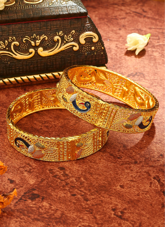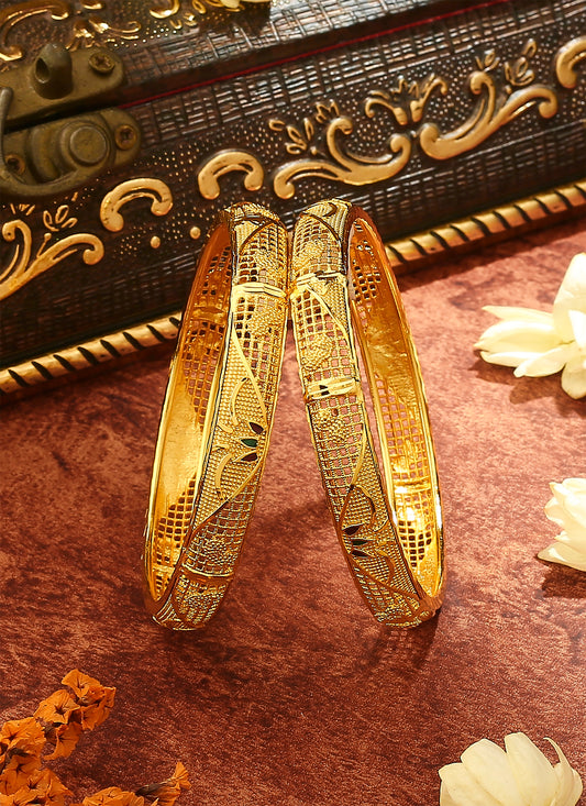 Exquisite Gold Plated Wedding Bangles - Set of 2