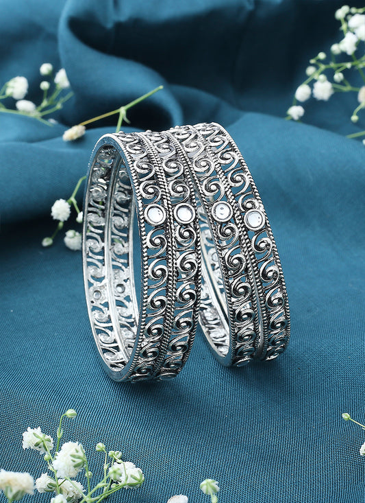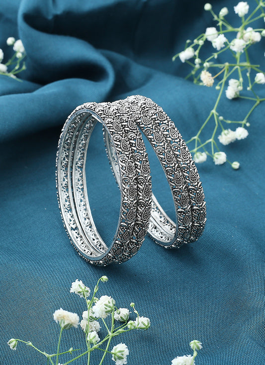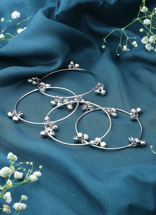 Set of 4 Thin Bangles With Hanging Silver Beads
