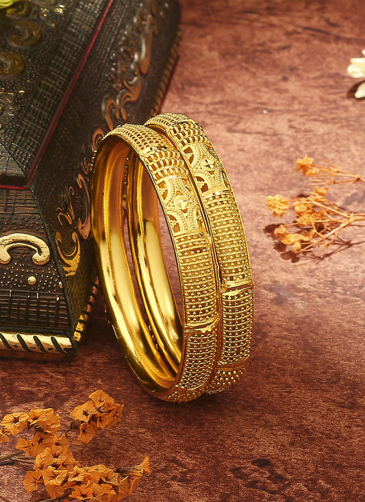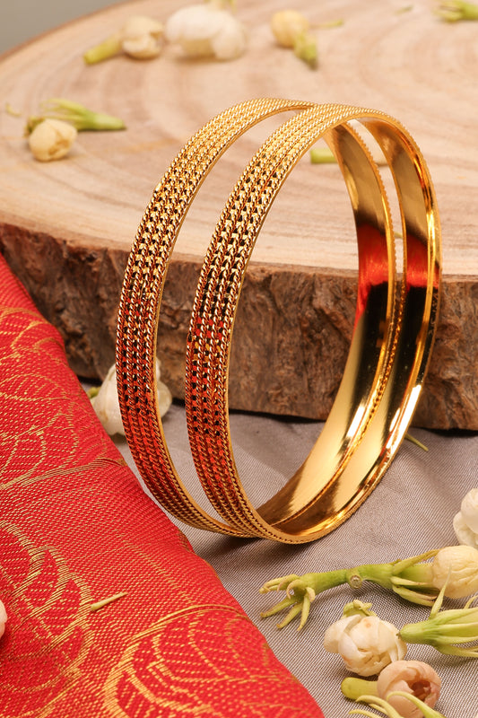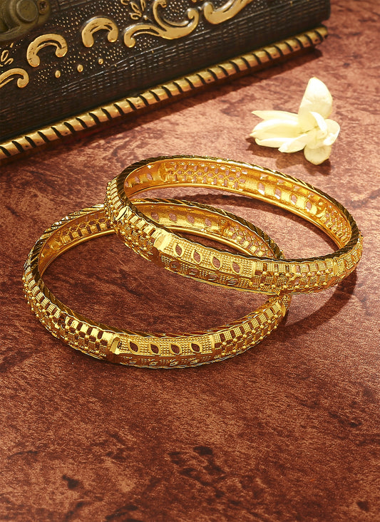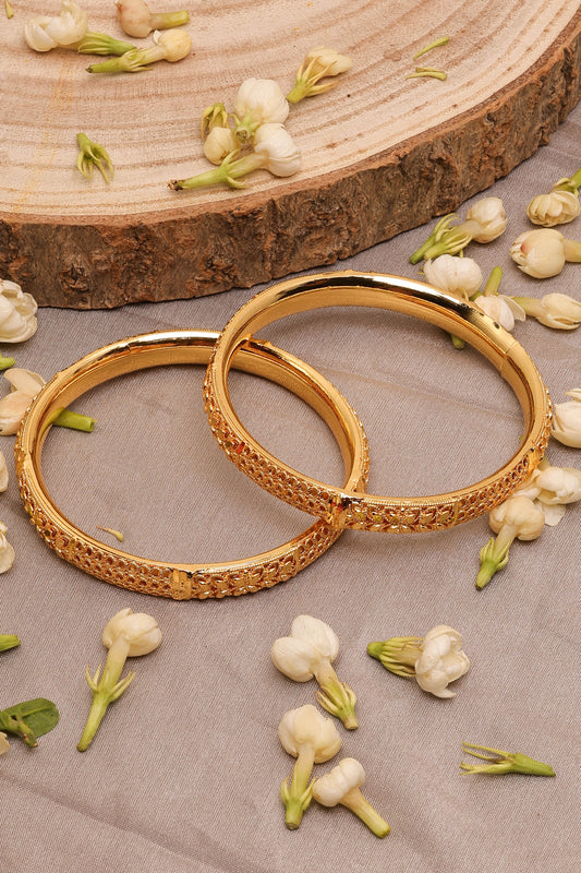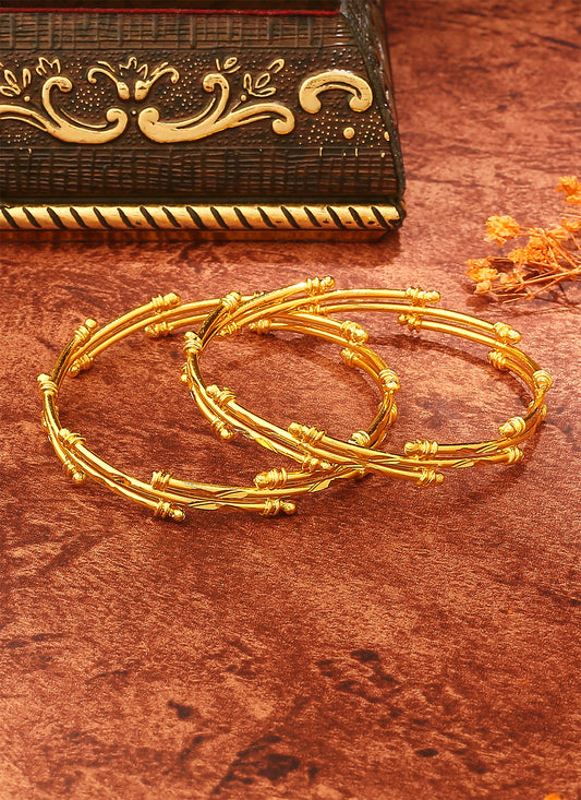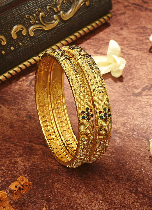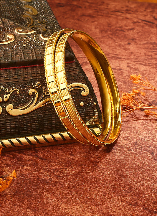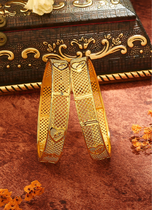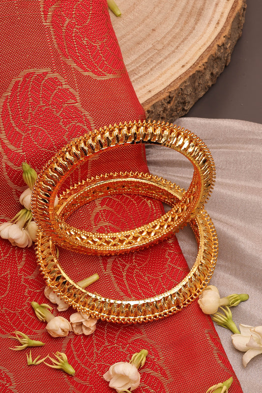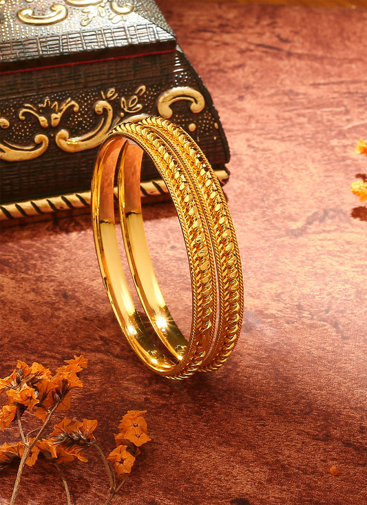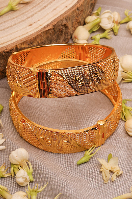 Golden Harmony: Set of 2 Leaf-Shaped Bangles