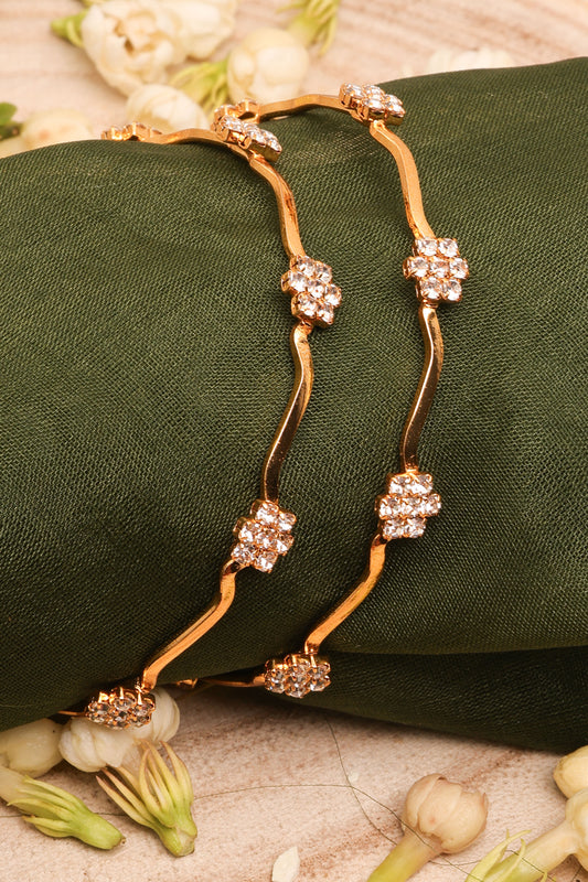 Rose Gold Plated Bangles Set with Gold Plated Stone Crosses