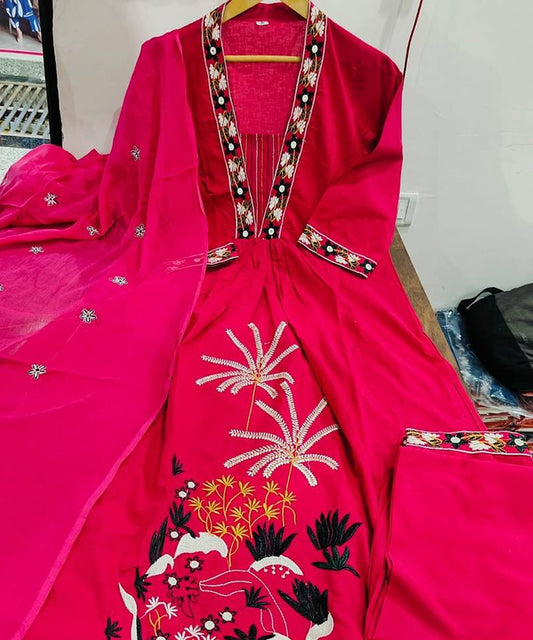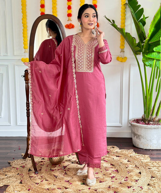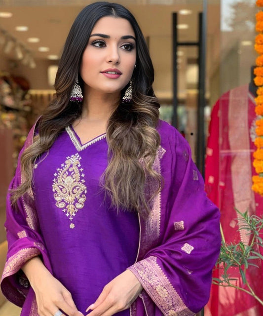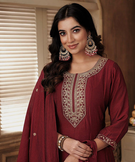 Maroon Silk Blend Salwar Kameez and Dupatta Set