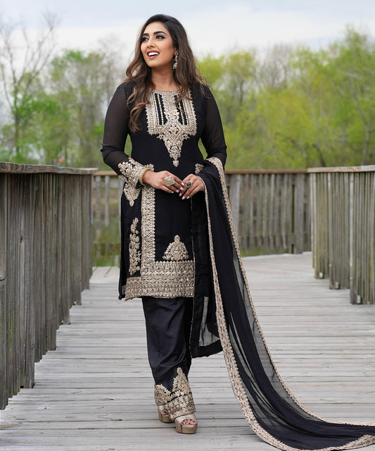 Semi-Stitched Teal Georgette Pakistani Suit with Embroidery