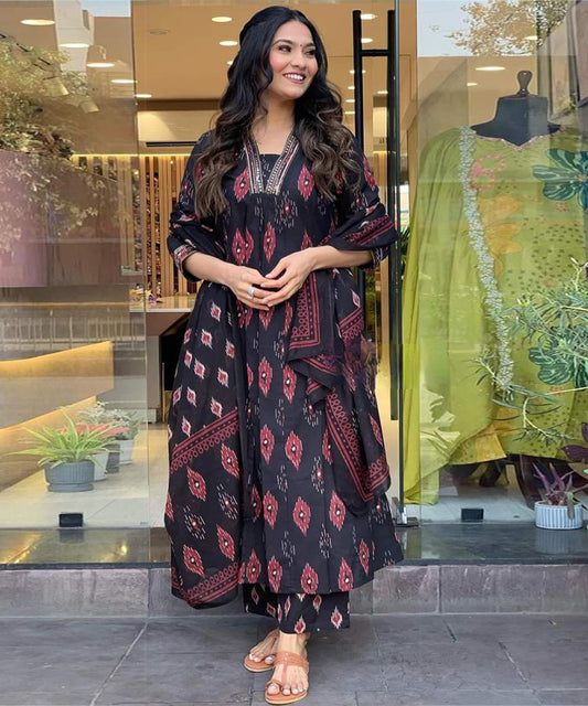Multicolor Cotton Printed Kurta with Pant and Dupatta