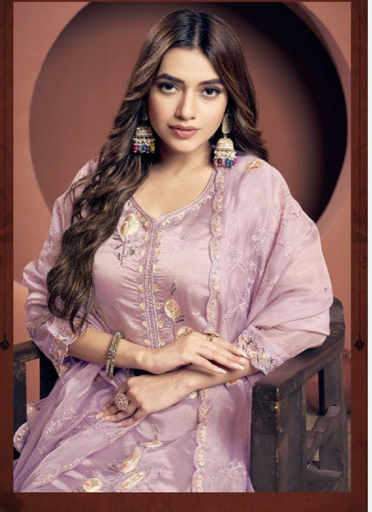 Purple Viscose Embroidered Kurta with Pant and Dupatta