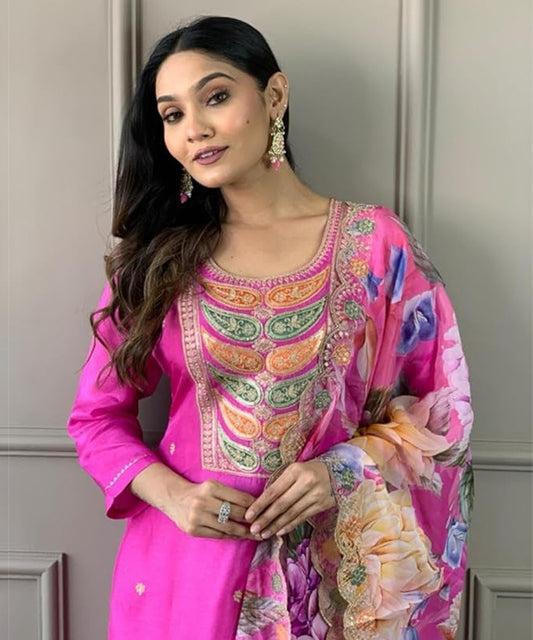 Salwar Kameez Dusty Rose Chinon with Dupatta