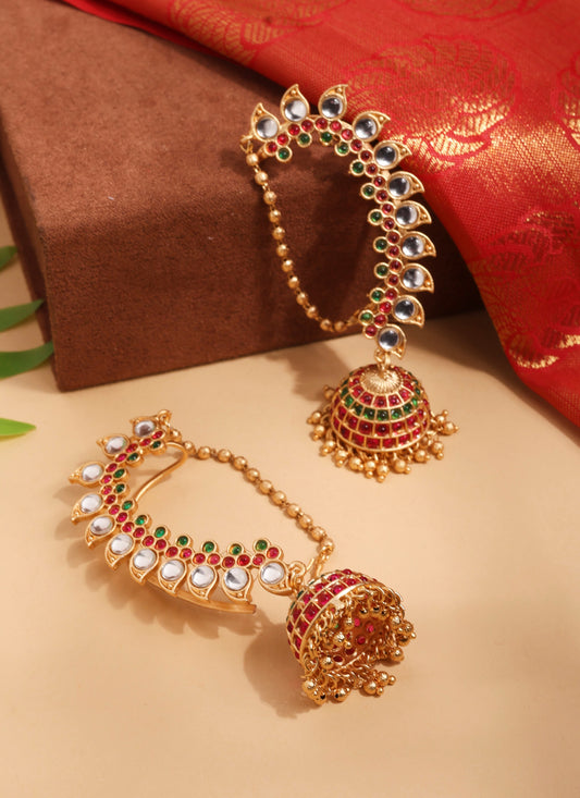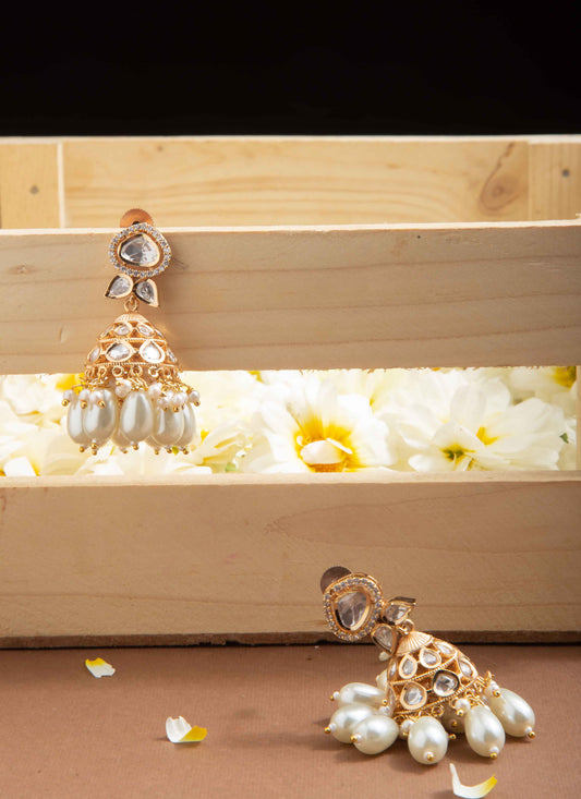 Sold outMehendi Kundan Pearl Jhumka Earrings