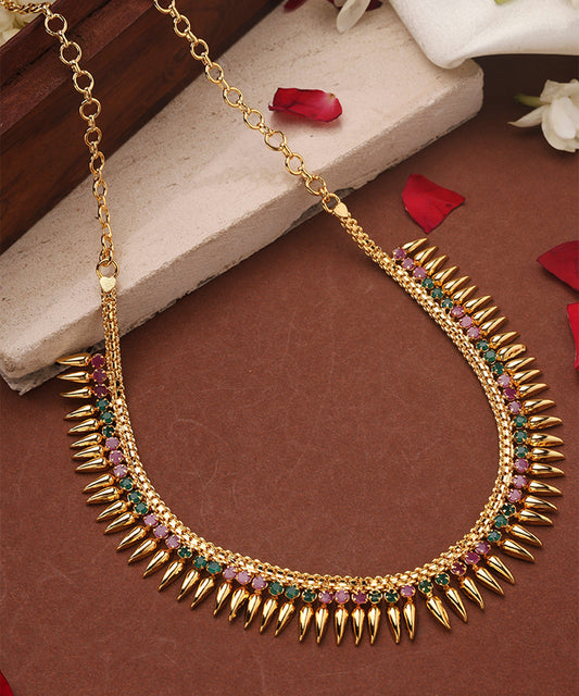 Gold Plated Choker and Stone Studded Necklace Set