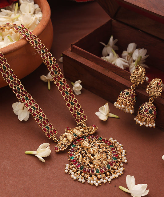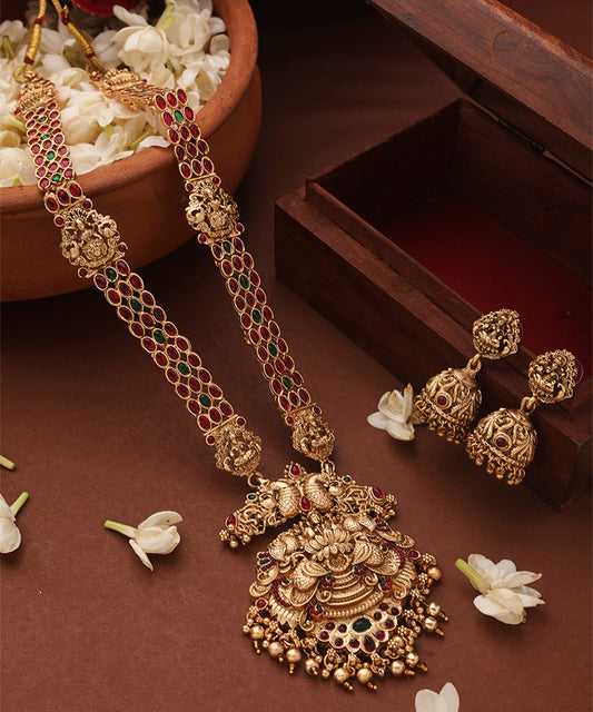 Temple Jewellery Long Statement Necklace with Kari Motif