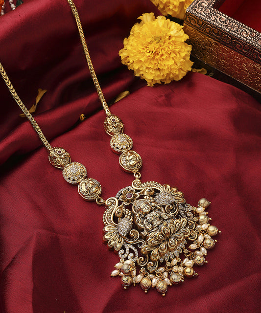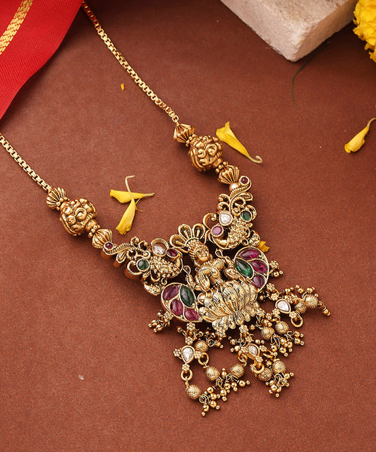 Long Gold Plated Temple Necklace with Laxmi Pendant