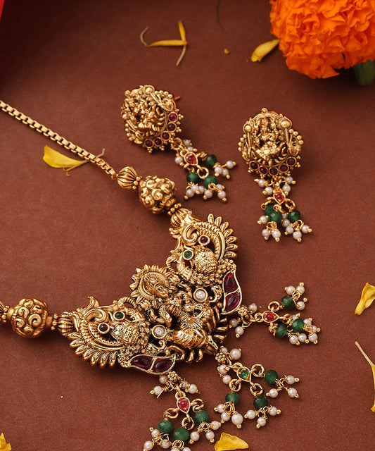 Temple Necklace Set with Laxmi Motif Pendant