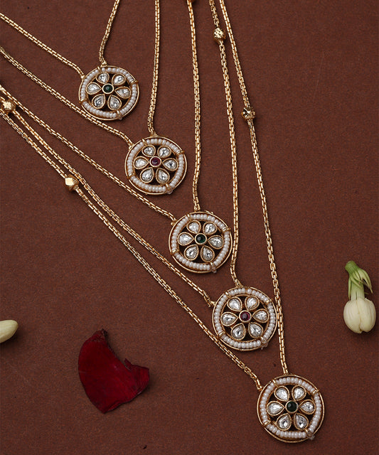 Five Layer Necklace Set with Round Pendants and Multicolour Stones
