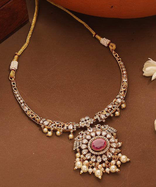 American Diamond Stone Studded Choker with Peacock Motif