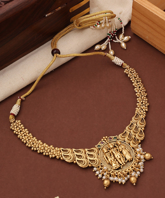 Gold Plated Temple Jewelry Necklace Set With Laxmi Pendant
