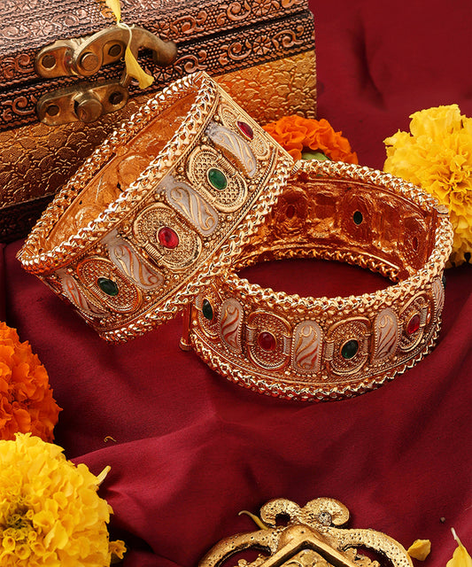 Gold Plated Rajwadi Meenakari Statement Bangles