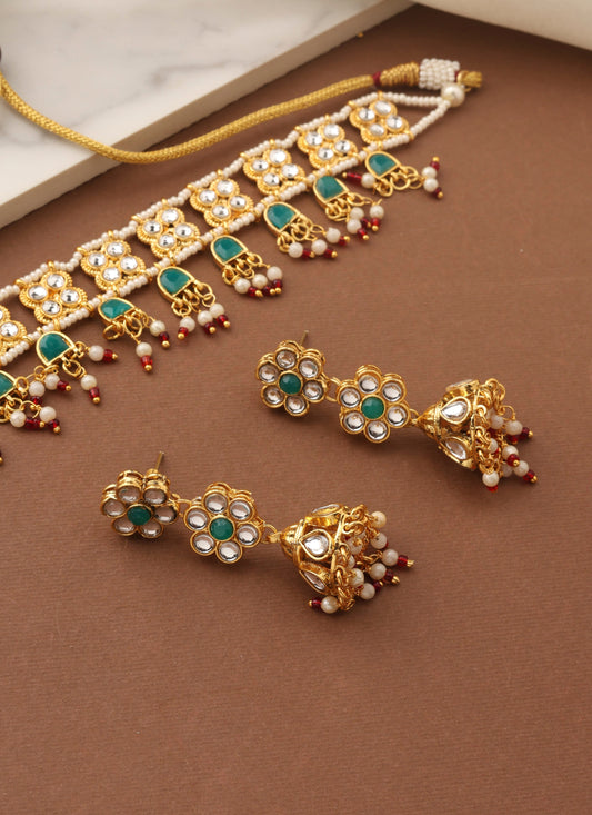 Kundan Choker Set with Green Accents and Matching Earrings