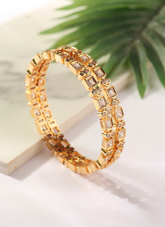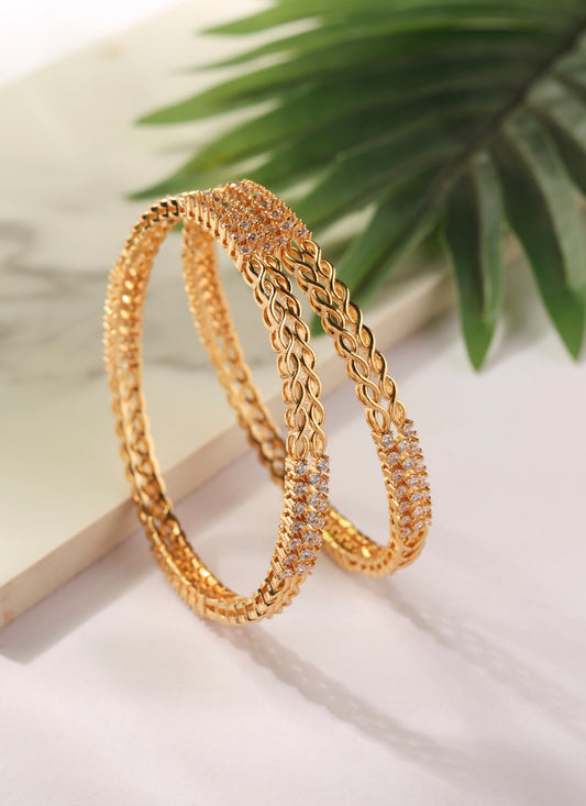 Gold Bangles with American Diamonds - Set of two