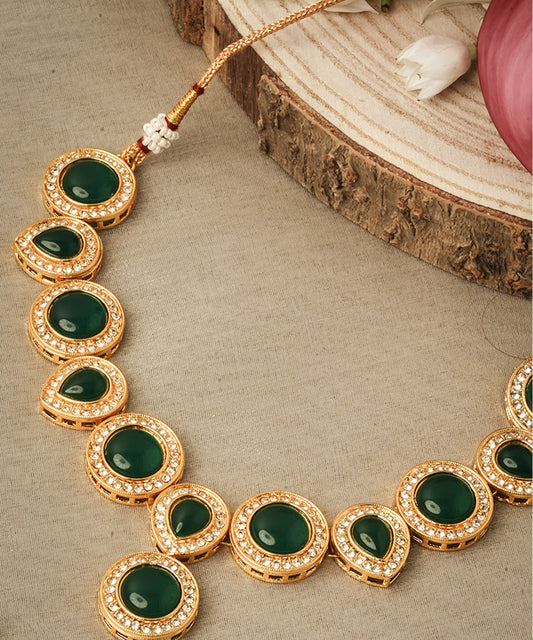 Green Accented Gold Plated Alloy Kundan Necklace Set