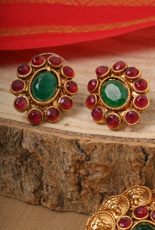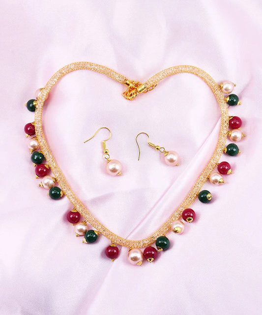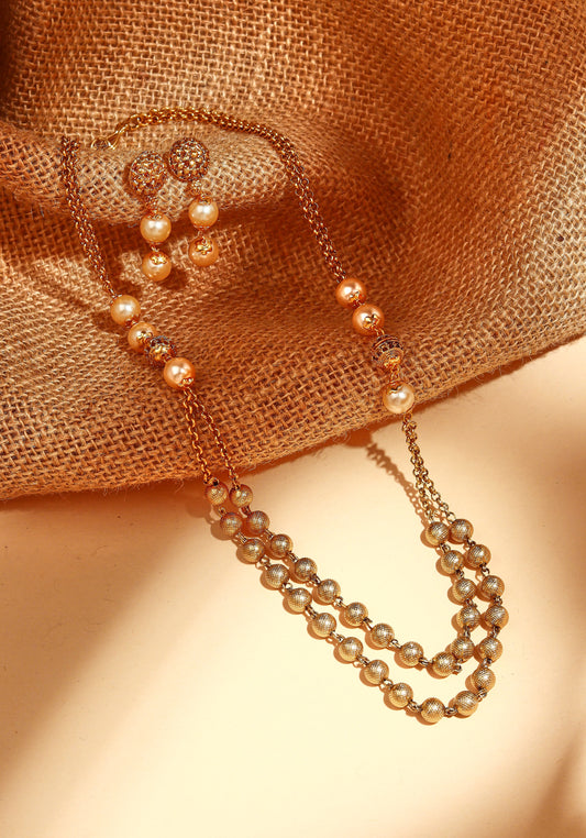 Golden Radiance Ensemble: Necklace Set and Pair of Earrings