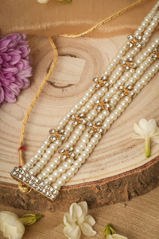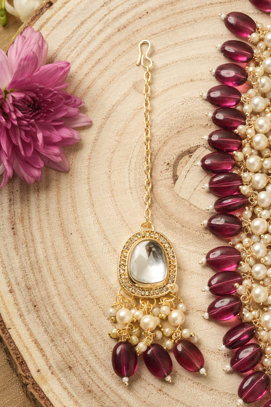 Kundan Stone Studded Choker Set with Purple Pearl Drops