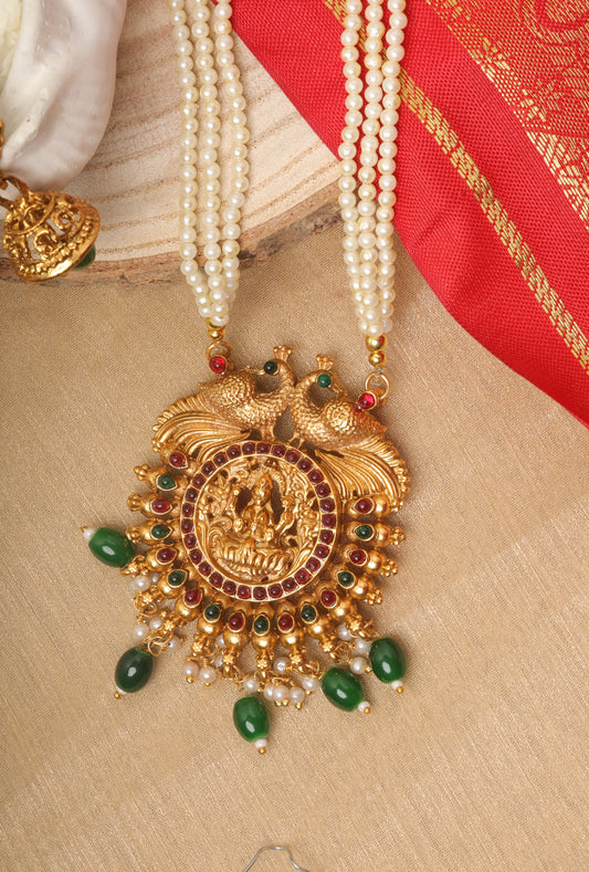 Peacock Shaped Jewelry Set With Laxmi Motif