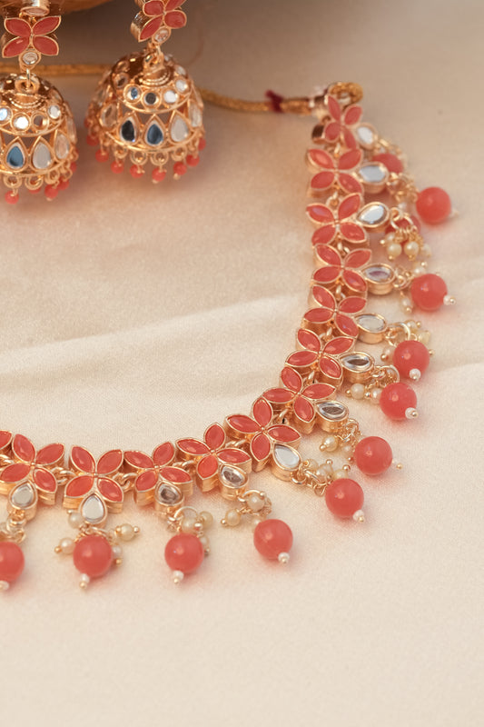 Pink Stone Studded Necklace Set for Festive and Bridal Elegance