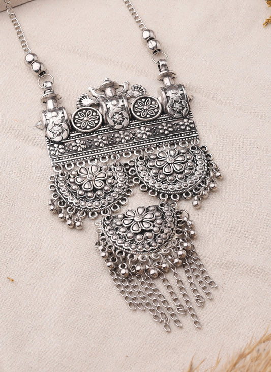 Statement Oxidized Necklace Set with Pendant for Navratri