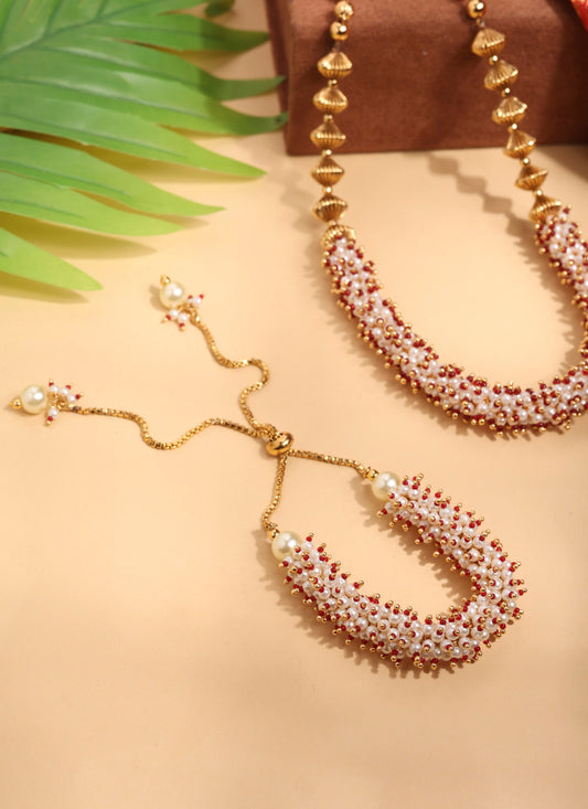 Pearl Necklace Set with Ball Chain Detailing