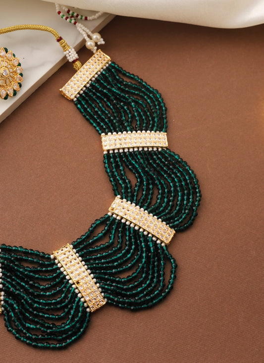 Kundan Choker Set with Green Accents and Matching Earrings