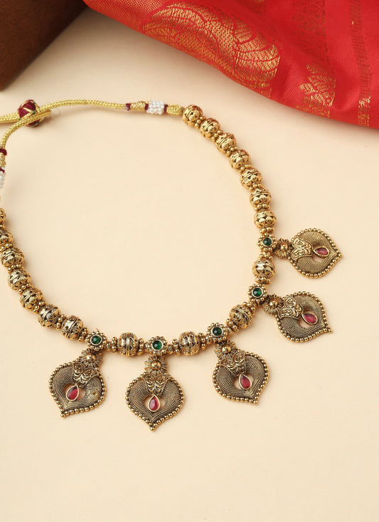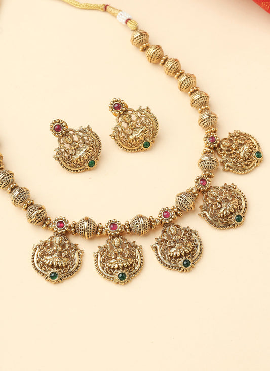 Antique Gold Necklace with Multicolour Stones and Matching Earrings