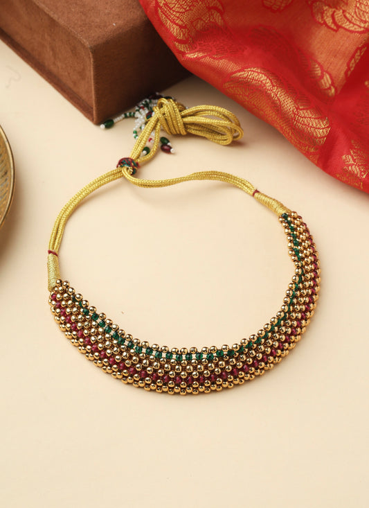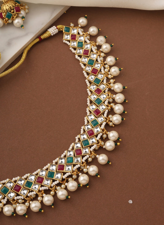 Multicolour Gold Choker Set with Pearls
